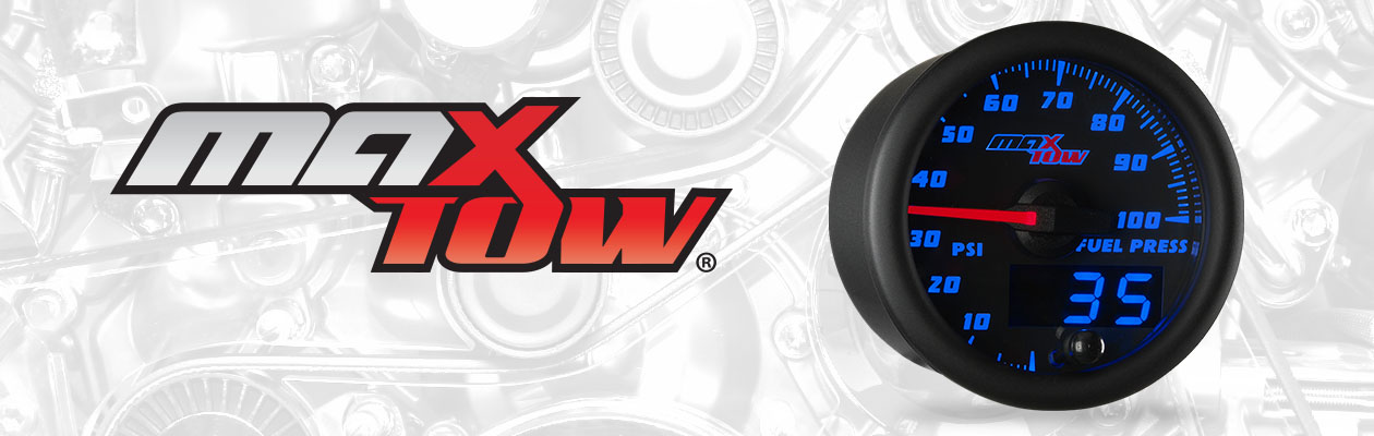 MaxTow Black & Blue Double Vision™ 100 PSI Fuel Pressure Gauges are electronically driven diesel truck gauges that read and display your application’s fuel pressure levels from 0 to 100 PSI with pinpoint accuracy. Adding this fuel pressure gauge ensures your fuel system’s pressure is running at optimal levels, and is not too low which could result in a loss of horsepower or damage to the fuel pump and injectors. Get ready to hit the road and Tow to the Max™