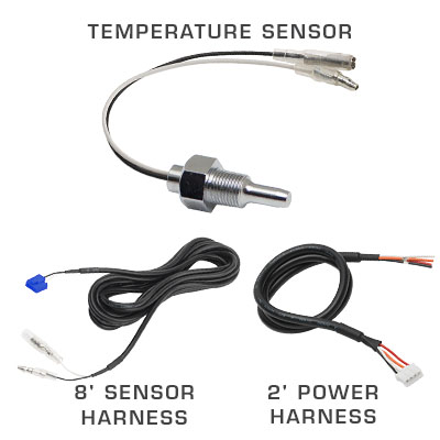 This oil temp gauge kit comes complete with all required install parts including a 1/8-27 NPT Electronic Oil Temperature Sensor; 8’ Oil Temperature Sensor Harness; 2’ Power Harness; 1’ Daisy Chain Harness; Gauge Visor; a Dashboard Pod; and Mounting Hardware. Detailed Installation Instructions walk you through the process step by step.