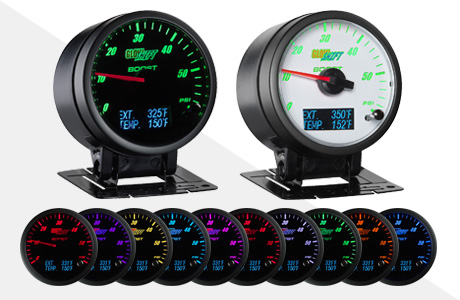 A GlowShift Gauge Series gives you the ability to define the look of LED gauges for trucks and cars. Choose between analog or digital displays, a clear or tinted magnified lens, black or white gauge dial, and ultra-bright color modes for gauge readings. With these features you can create a targeted look that is right for your specific application. These custom automotive gauges will not only deliver extremely accurate readouts but will also enhance the interior of your car or truck.