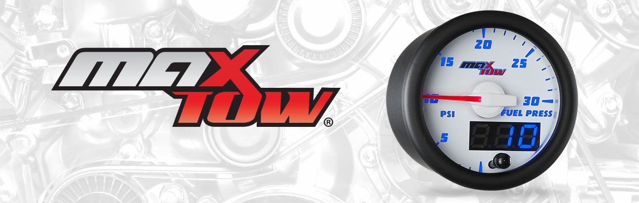 MaxTow White & Blue Double Vision™ 30 PSI Fuel Pressure Gauges are electronically driven diesel truck gauges that read and display your application’s lower fuel pressure levels from 0 to 30 PSI with pinpoint accuracy. Adding this fuel pressure gauge will help you guard against damage to the fuel pump and injectors, along with avoiding a loss in overall horsepower. Get ready to hit the road and Tow to the Max™